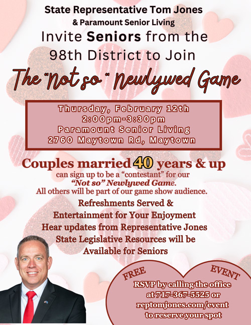 Would you like to get early notice of events that Rep. Tom Jones is sponsoring? Sign up for his weekly email here.